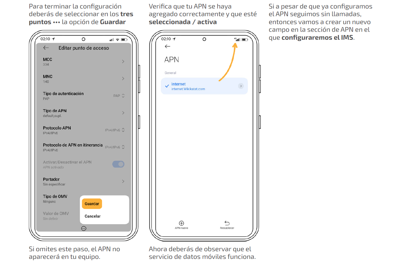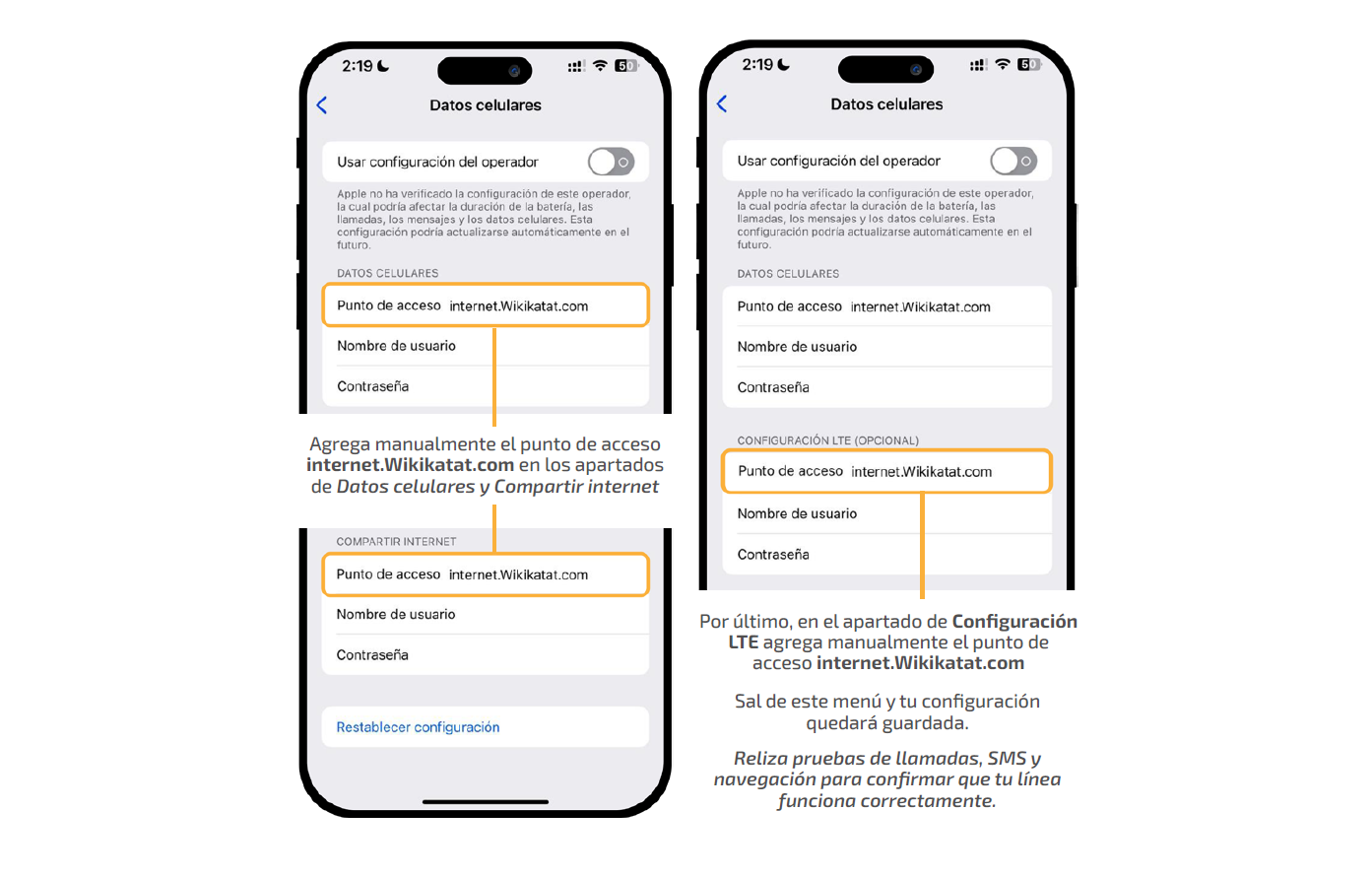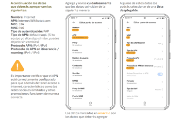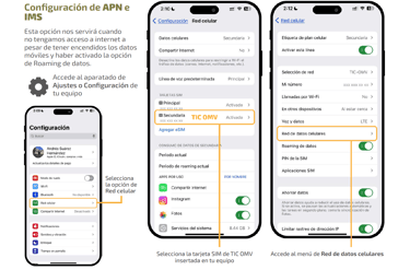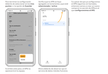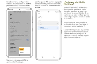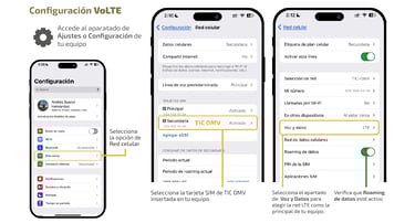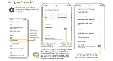 Para asegurarte de que tu red funciona adecuadamente y que tus bolsas de datos y redes sociales se están consumiendo correctamente, puedes navegar, hacer llamadas y enviar y recibir SMS, revisa que tu equipo está bien configurado.
